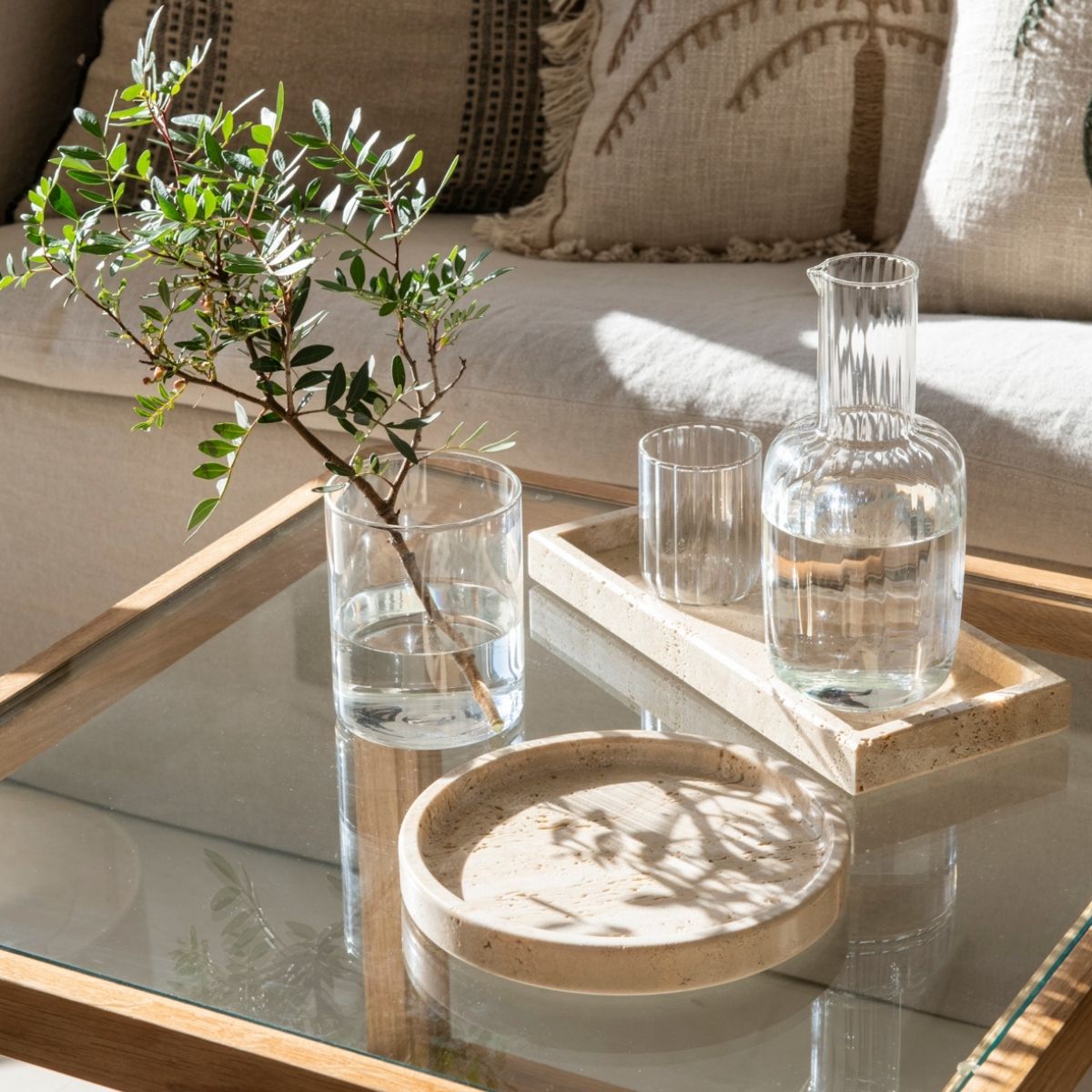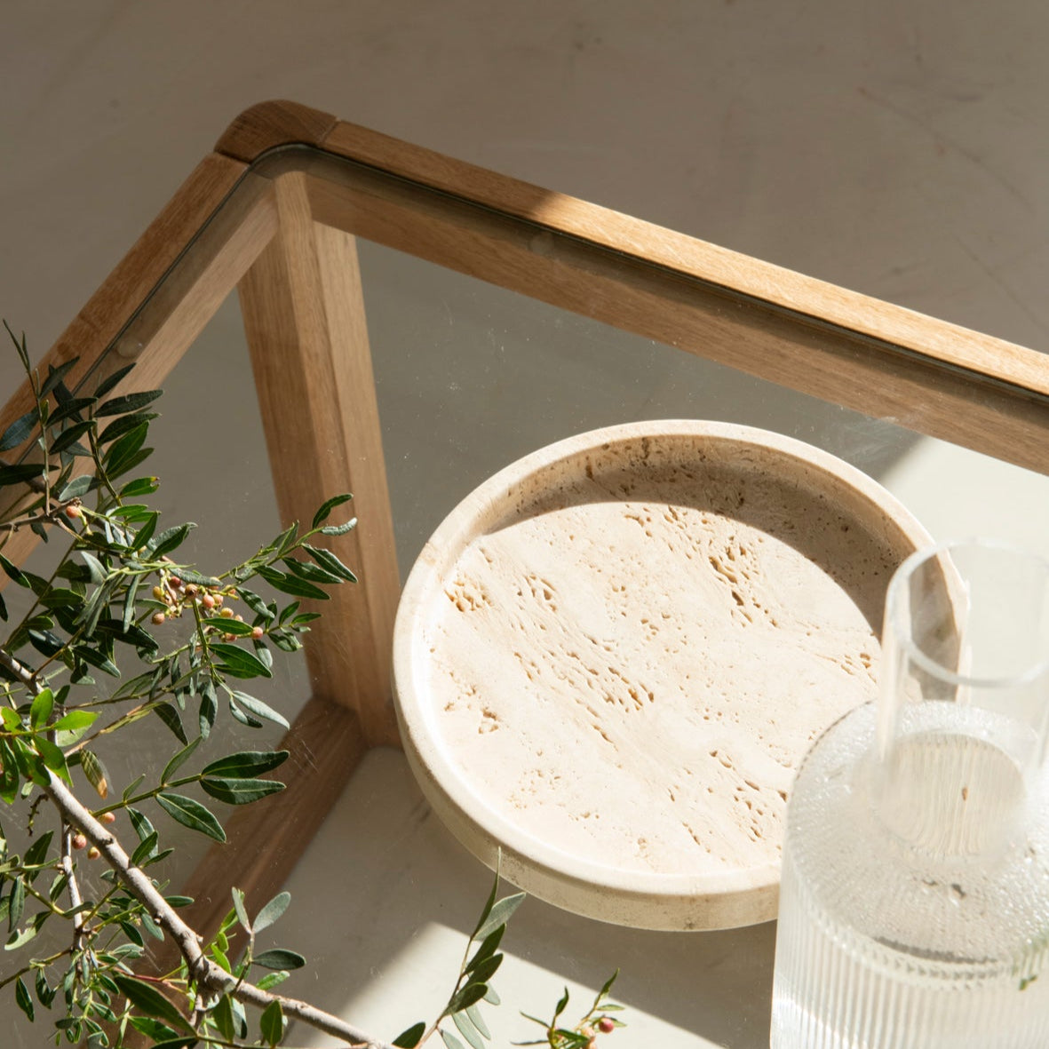 Bandeja de mármol travertino redonda