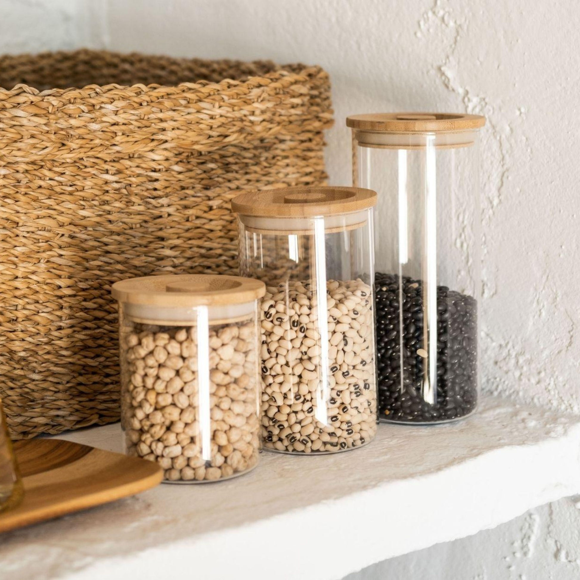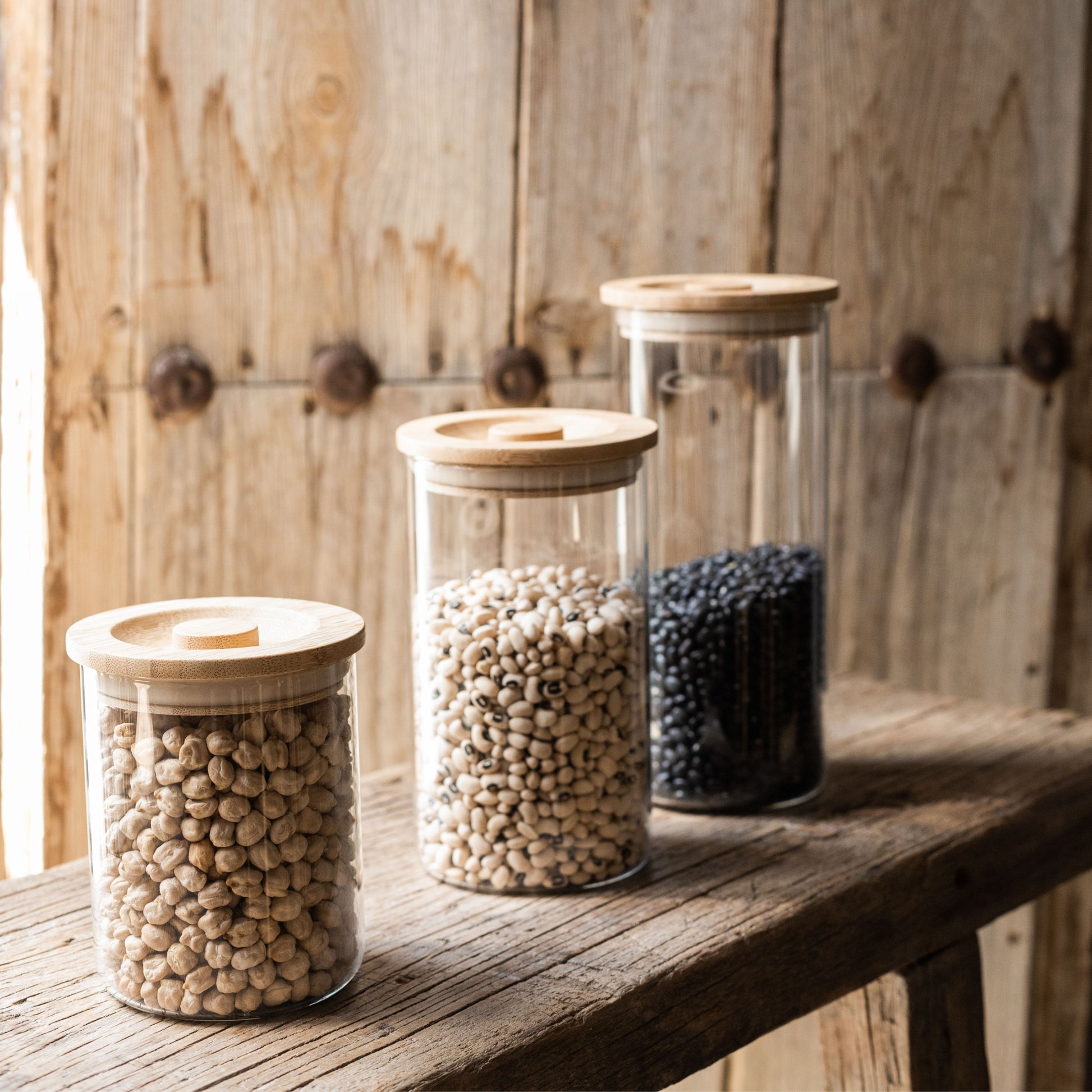 Bote de cocina grande de cristal y bambú 1.600 ml