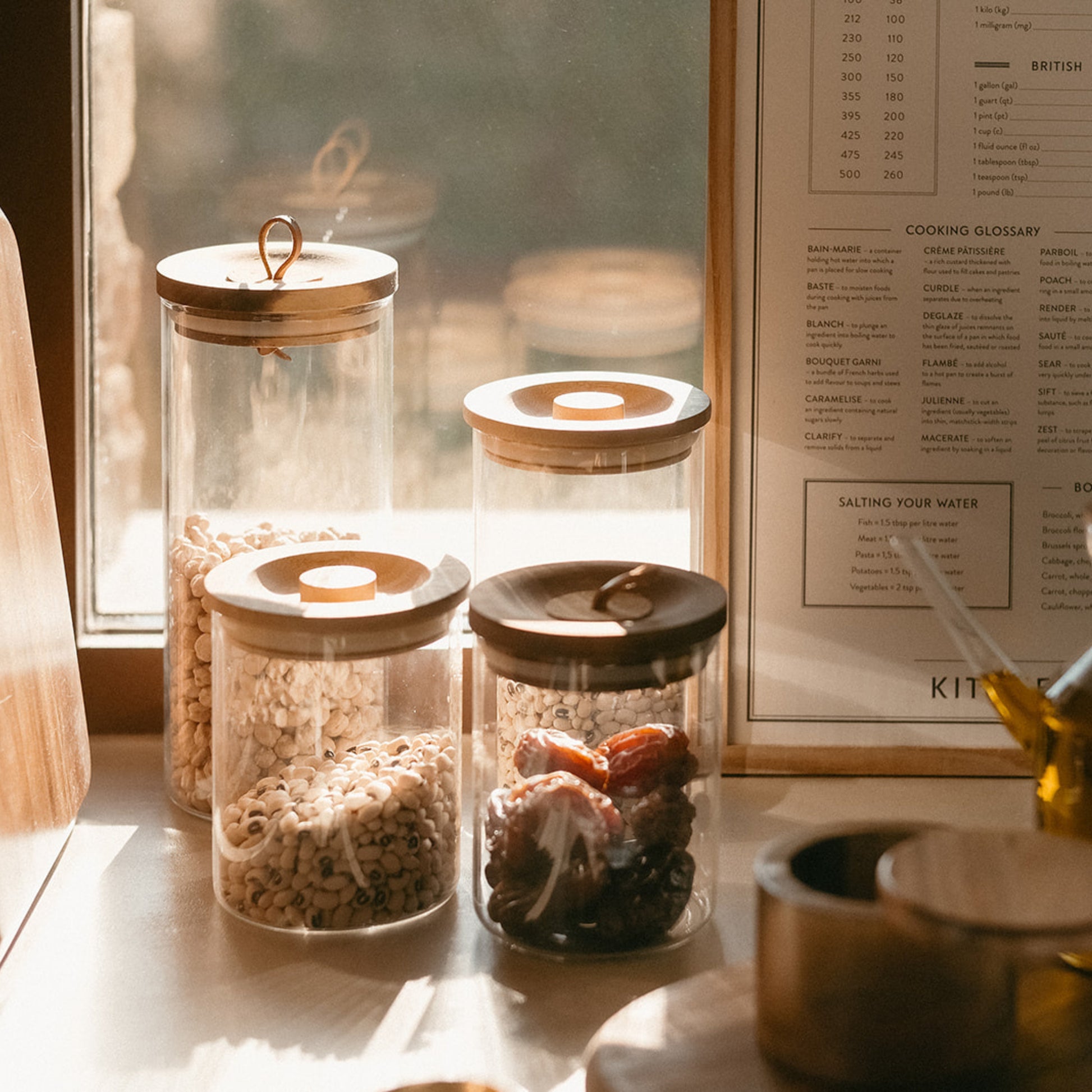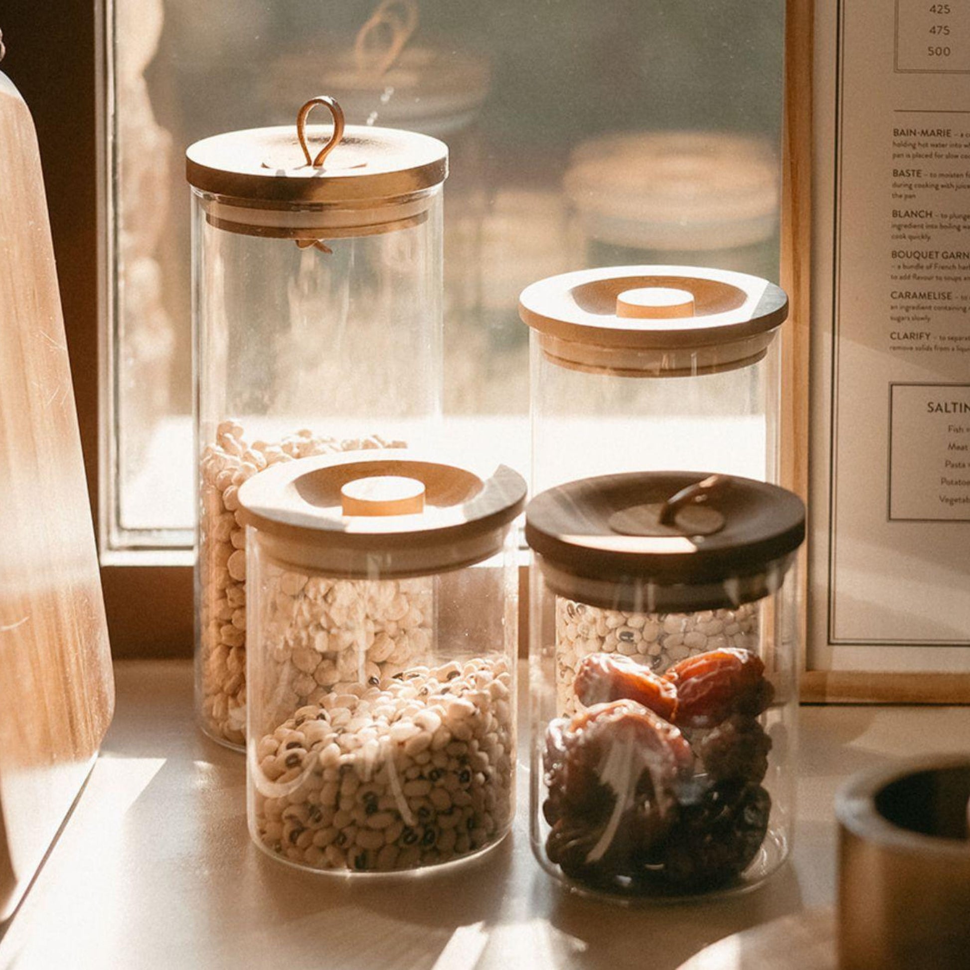 Bote de cocina grande de cristal y madera 1.600 ml