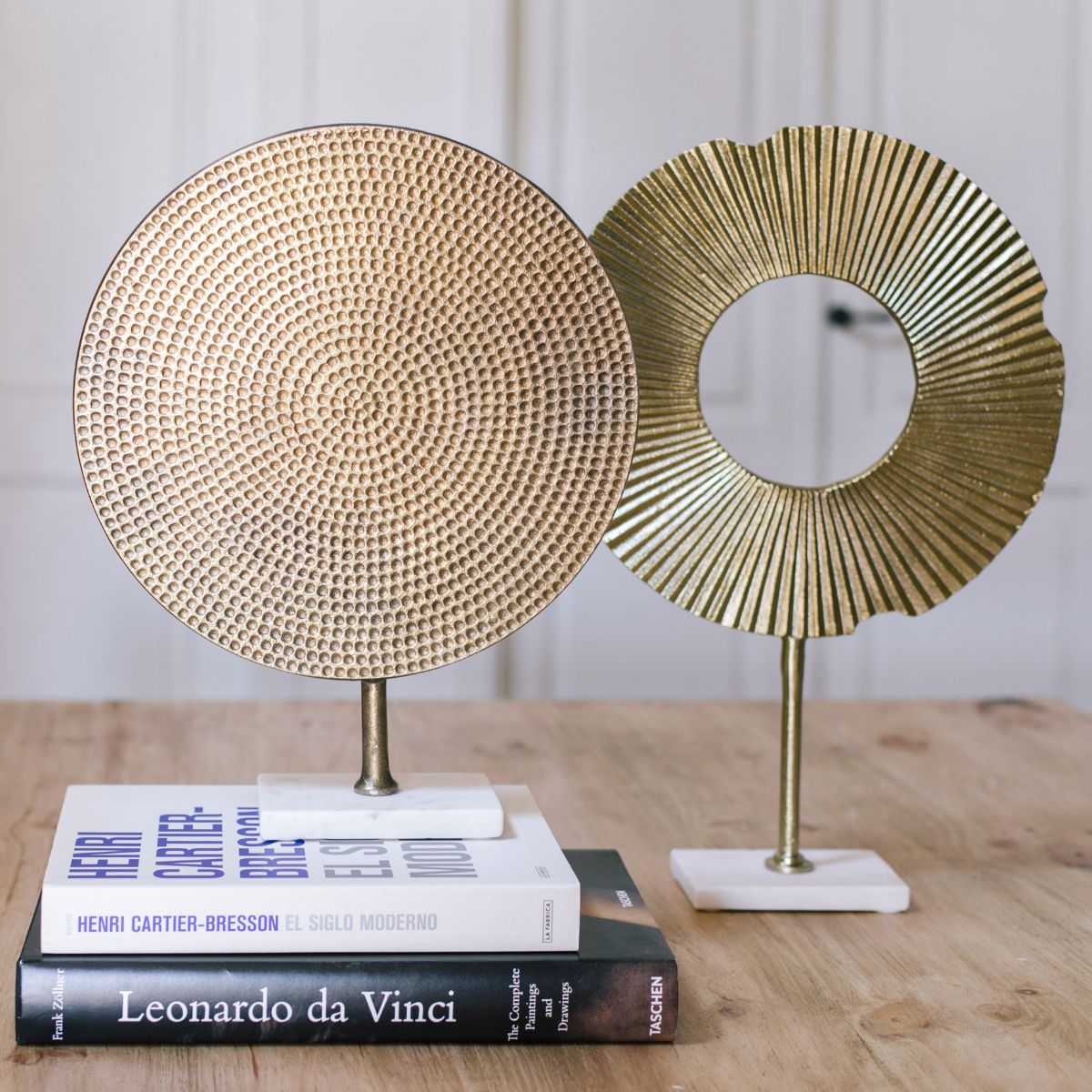 Figura decorativa abstracta de metal dorado