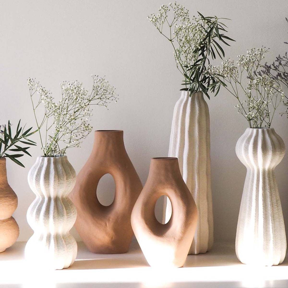 Jarrón decorativo de gres Kaduna blanco 48,5 cm