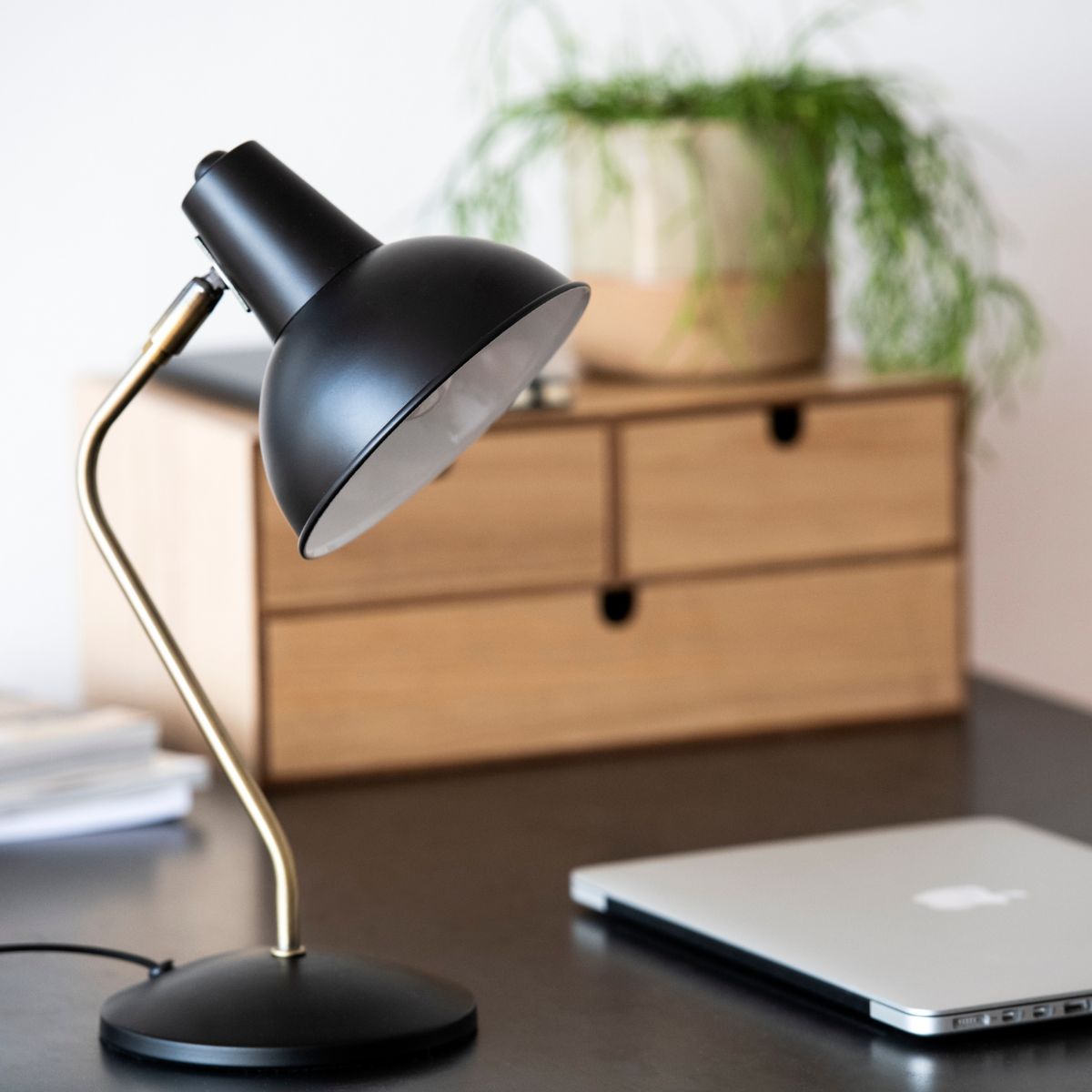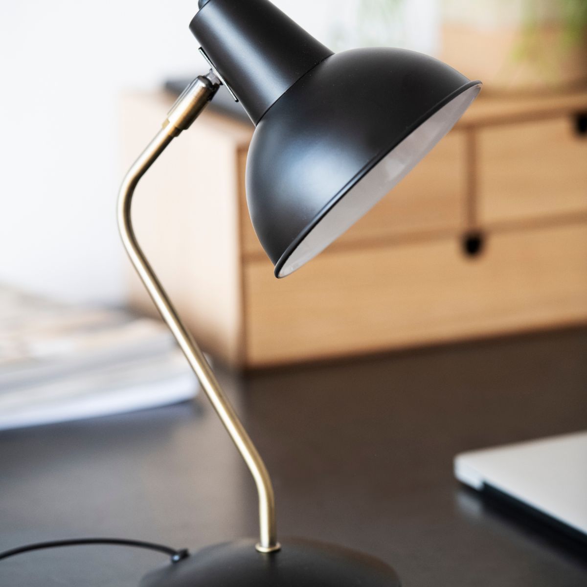 Lámpara de escritorio industrial de metal negra