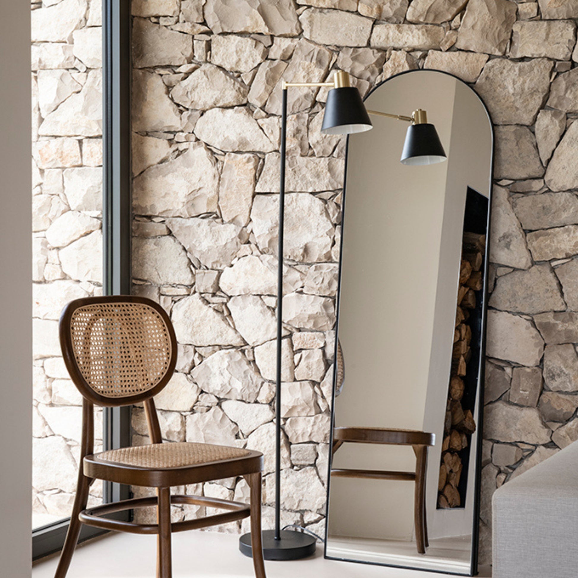 Lámpara de pie industrial de metal dorado