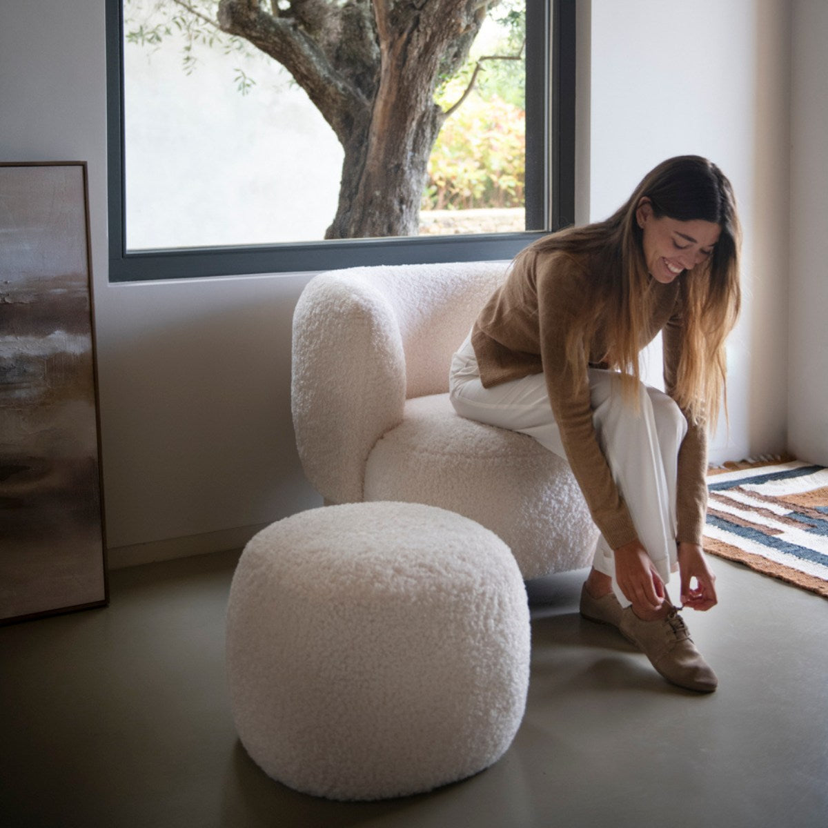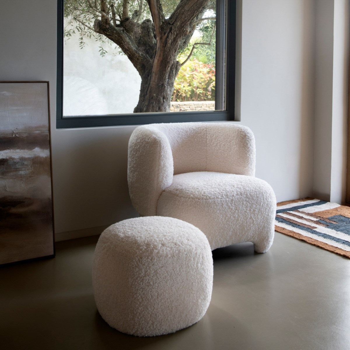 Puf de borreguito blanco Dana